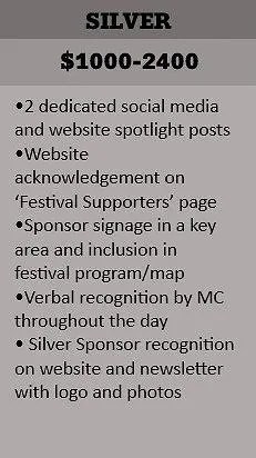 Previously we have had to charge an entrance fee to help cover operating expenses and relied heavily on our volunteers and minimally on donations. This year we are hoping to eliminate our entrance fee. Free entry for everyone aligns with our values of providing an inclusive, accessible, and welcoming environment for all. Our goal is to provide a memorable event and welcome anyone looking to explore and celebrate the beauty that our community has to offer. In order for this to happen, we need your support. We are offering sponsorship tiers to allow flexible payment options.